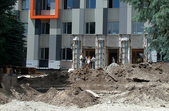 Виконавець робіт вже закінчив реконструкцію зовнішнього фасаду та основні роботи зсередини. Наразі будівельники приступили до оформлення інтер'єру приміщень, паралельно облаштовують прилеглі території.