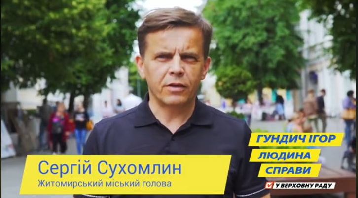 А ще майже всі кандидати мають агітаційні відеоролики – розповідають про себе, обіцяють, ллють мед у вуха виборців, а Ігор Гундич використовує тактику «хай про мене люди скажуть», і все б нічого, якби серед цих людей не засвітився мер Житомира, який відверто агітує за конкретного кандидата. Так, мер – посадова особа, а в законі «Про вибори народних депутатів України» йдеться про рівність прав і можливостей кандидатів та партій, яка забезпечується «рівним та неупередженим ставленням органів державної влади, органів влади Автономної Республіки Крим та органів місцевого самоврядування, їх службових та посадових осіб до кандидатів у депутати, партій - суб'єктів виборчого процесу» (пп.3 п.5 ст.3).