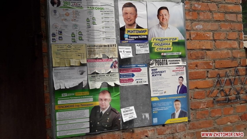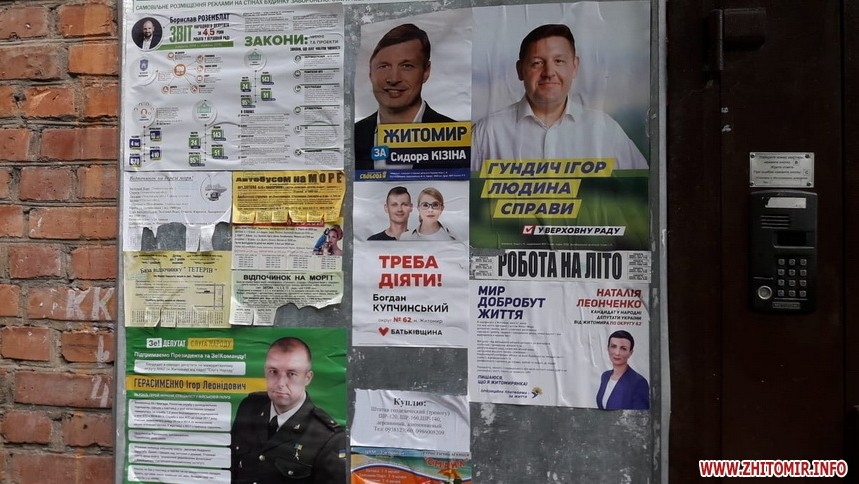 З цього тижня у Житомирі агітками почали заклеювати інформаційні стенди біля під’їздів, причому таке враження, що кандидати міряються розмірами, і навряд чи всі 18 зможуть одночасно розміститися. До речі, в нашому ОСББ ці стенди познімали і тепер обабіч дверей – приємний сірий колір, а не об’яви чи агітація.