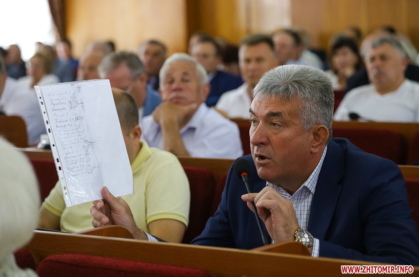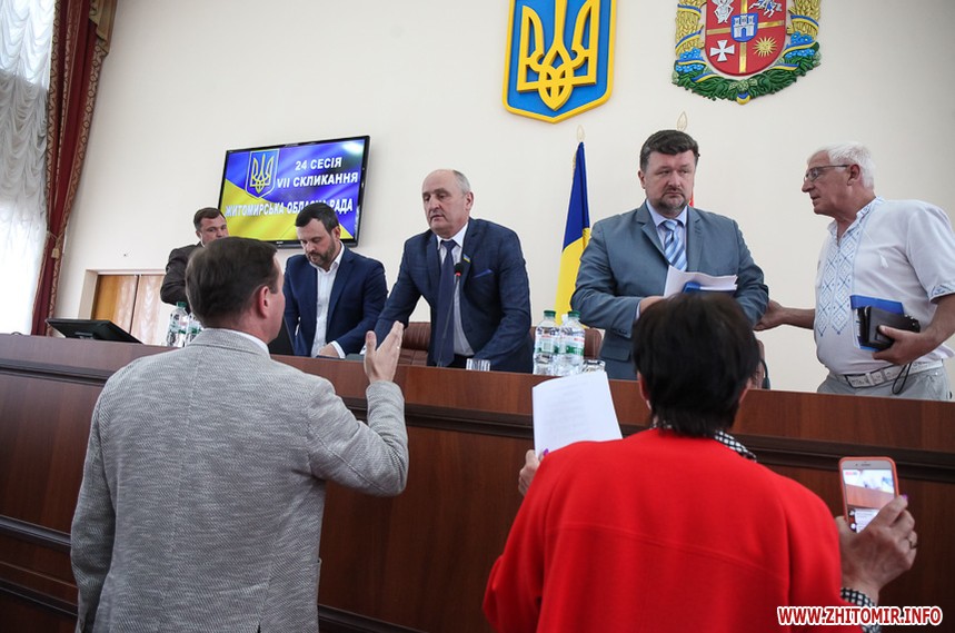 О 10-й ранку 9 липня розпочалася 24-та позачергова сесія Житомирської обласної ради, на якій були присутні 46 депутатів з 64. Один з депутатів вийшов із фракції Опоблоку, ще один закликав перевірити ефективність використання дозволів на користування надрами, погодження на видачу яких дала облрада.