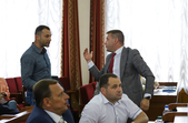 Після розгляду 31 питання (одне із затверджених 32-х зняли з розгляду) слово взяли активісти, які виступали більше години. Скандальному ексдиректору Бердичівського медколеджу Володимиру Клименюку, який почав розповідати про безлад у коледжі, присутні не дали договорити, допитуючись, що робить на сесії людина, яку звинувачують у сексуальних злочинах.
