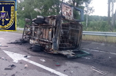 У прес-службі ГУНП у Київській області повідомили, що двоє військових, які знаходились у приміщенні автомобіля для конвоювання засуджених, згоріли на місці події, водія шпиталізували з травмами ніг.