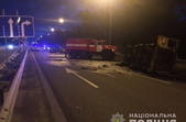Попередньо встановлено, що водій автомобіля «Тойота Авенсіс» не впорався з керуванням та зіткнувся з задньою частиною автомобіля конвою, у результаті чого останній перекинувся та загорівся.