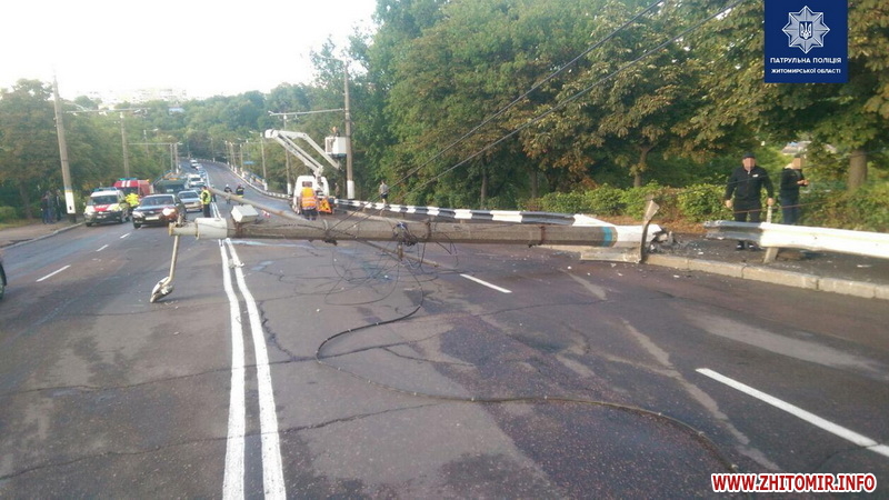 Начальник служби руху Житомирського трамвайно-тролейбусного управління Руслан Галіцький у коментарі Житомир.info повідомив, що внаслідок автопригоди впала опора контактної мережі тролейбусів.