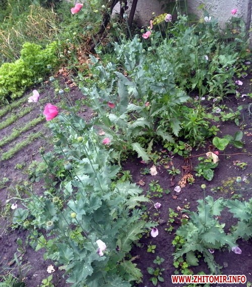 «11 липня у ході санкціонованого обшуку за місцем проживання житомирянина дільничні офіцери міського відділу поліції виявили та ліквідували насадження маку і конопель. Із присадибної ділянки господаря вилучили чверть сотні рослин коноплі та понад чотири десятка – снотворного маку», - повідомили у відділ комунікації і виклали знімки конопель поміж огірками та охайний рядок макових рослин, а також – «зону відпочинку» у дворі з диваном під накриттям.