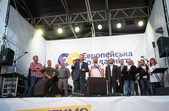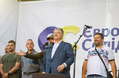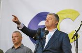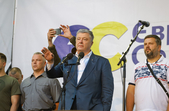 «Від нашої з вами єдності залежить, чи здатні ми об’єднатися і захистити усі надбання. І перше, що ми маємо захистити – це нашу армію, у її створенні та відбудові великий вклад належить саме житомирянам. Тому саме житомирянам велика подяка за армію, але наші опоненти хочуть її скорочення, хочуть її занедбання. Тому наше з вами завдання – не дозволити цього. Інше завдання – захистити нашу мову. Нас хочуть зупинити, зупинити наш проєвропейський рух, але коли ми говоримо – їх не чути. Усе дуже просто: потрібно лише об’єднатися і впевнено йти вперед», - зауважив Петро Порошенко та закликав прийти на вибори 21 липня та вдарити в «десятку».