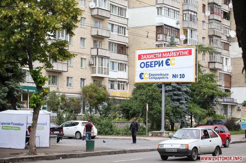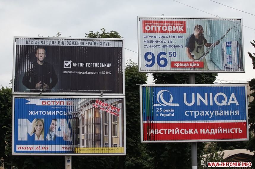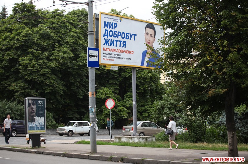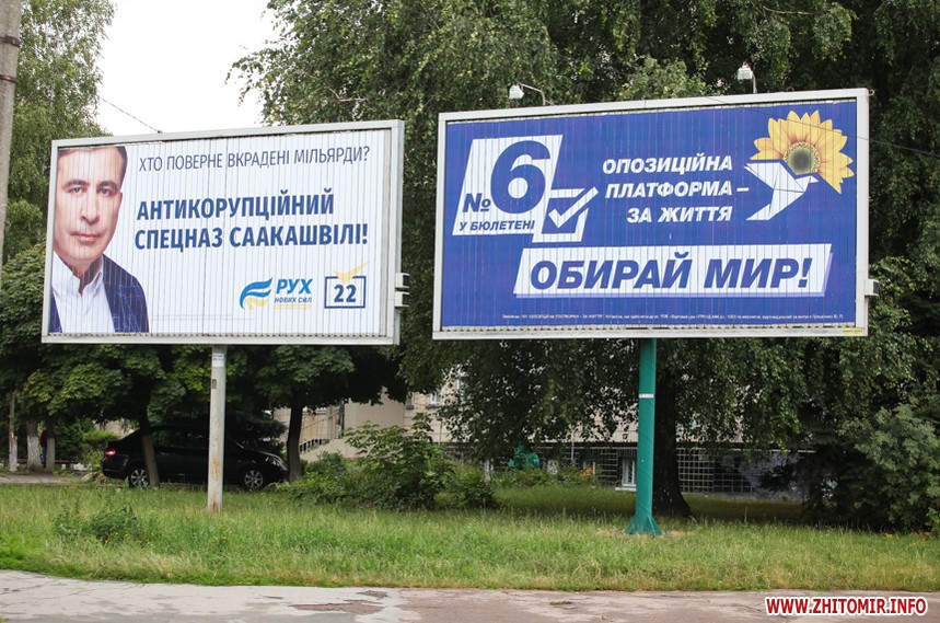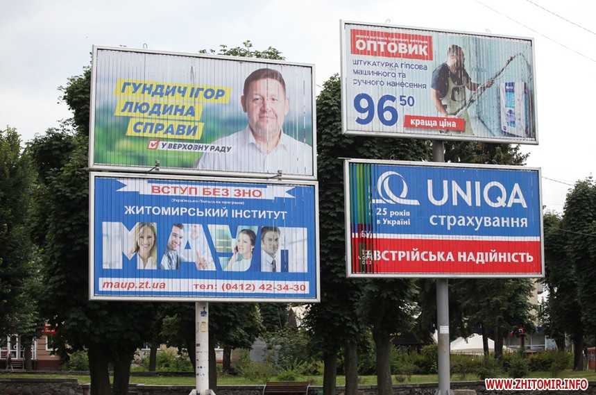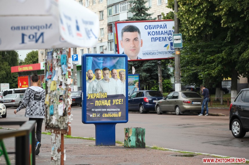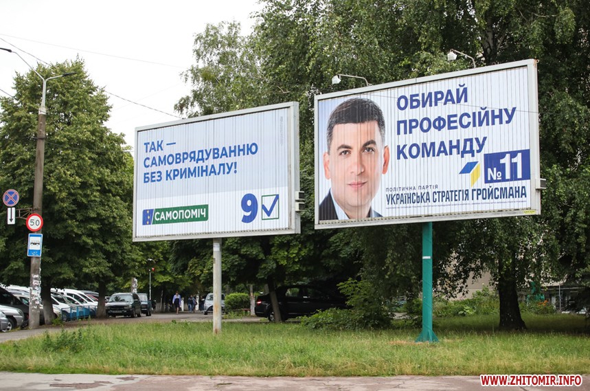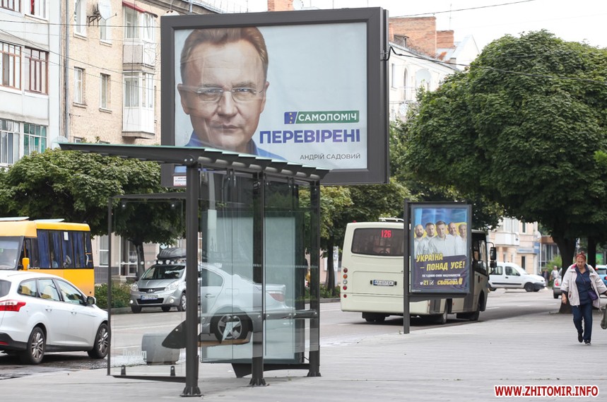 За тиждень до парламентських виборів у Житомирі майже не залишилося білбордів та сітілайтів, які б оминула політична реклама.