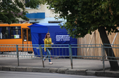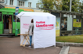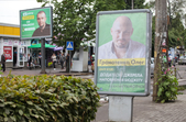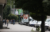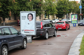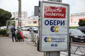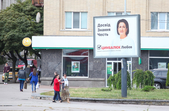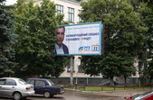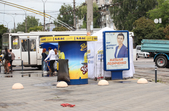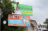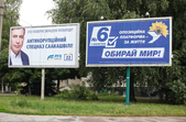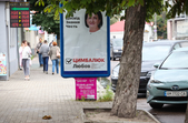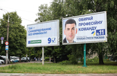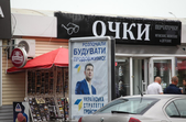 Рекламуються кандидати та партії, закликають та обіцяють, завішують місто своїми портретами, заставляють тротуари агітаційними наметами.