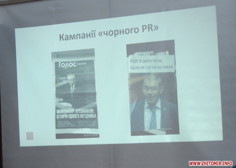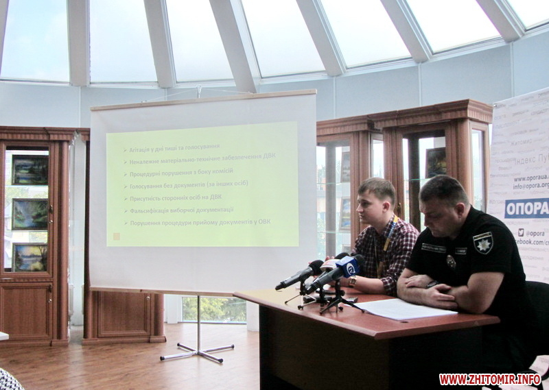 Координатор Громадянської мережі ОПОРА в Житомирській області Тарас Чмут розповів, що за місяць виборчої кампанії в регіоні зафіксували масові випадки «чорного піару» проти кандидатів, розміщення агітації без вихідних даних. Також в області проводились безкоштовні концерти і фестивалі з подарунками, організовані кандидатами чи їхніми представниками.