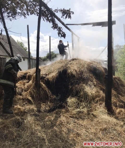 18 липня, о 13:08, до служби порятунку «101» надійшло повідомлення про займання сіна у приватному житловому секторі в с. Небіж Хорошівського району. На місце події виїхали вогнеборці 22-ї Державної пожежно-рятувальної частини.