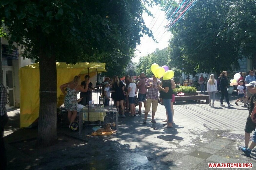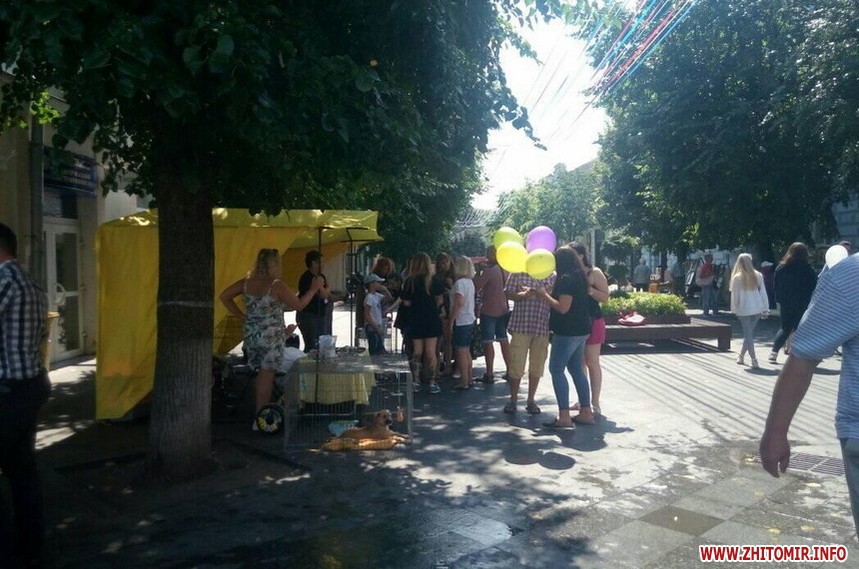 Опівдні 21 липня на пішохідній Михайлівській у Житомирі перехожим пропонують взяти на виховання кошеня чи цуценя.