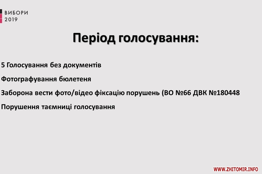 Як повідомляв Житомир.info, 21 липня 2019 року станом на 20.00 до поліції надійшло 39 повідомлень про можливі порушення виборчого законодавства на дільницях Житомирської області: найбільше у Житомирі та Коростені.