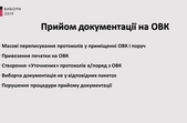 «Технічне забезпечення ДВК. Ця проблема набагато глибша аніж здається. Банальна відсутність кабінок, скриньок або площі приміщення призводить до того, що там утворюються черги, членам комісії важче працювати, вони швидше втомлюють, починають бути агресивними, починають закривати очі на проблем, яких не мало би бути. При цьому зафіксувати процес голосування в таких умовах надзвичайно складно», - зазначив Тарас Чмут.