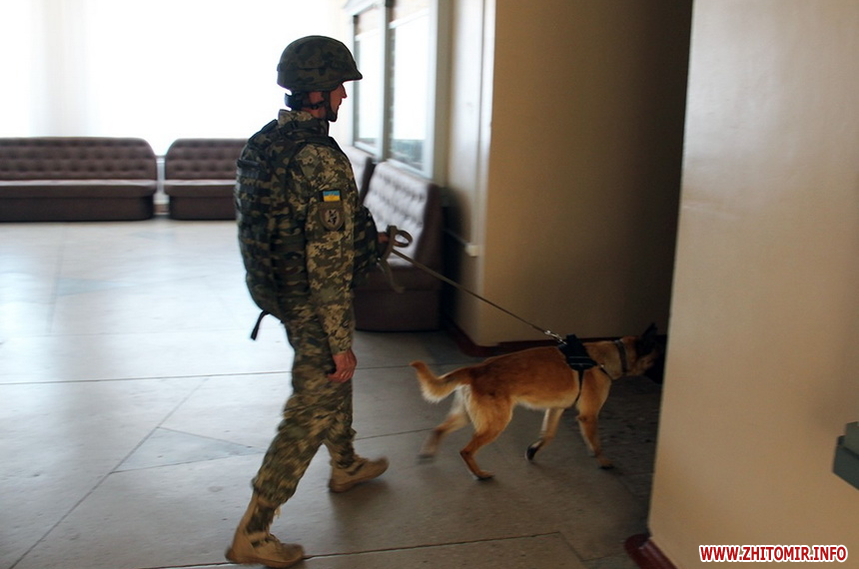 У Житомирі поліція перевіряла повідомлення про вибухівку у двох вищих навчальних закладах, один вуз вже обшукали і нічого не знайшли.