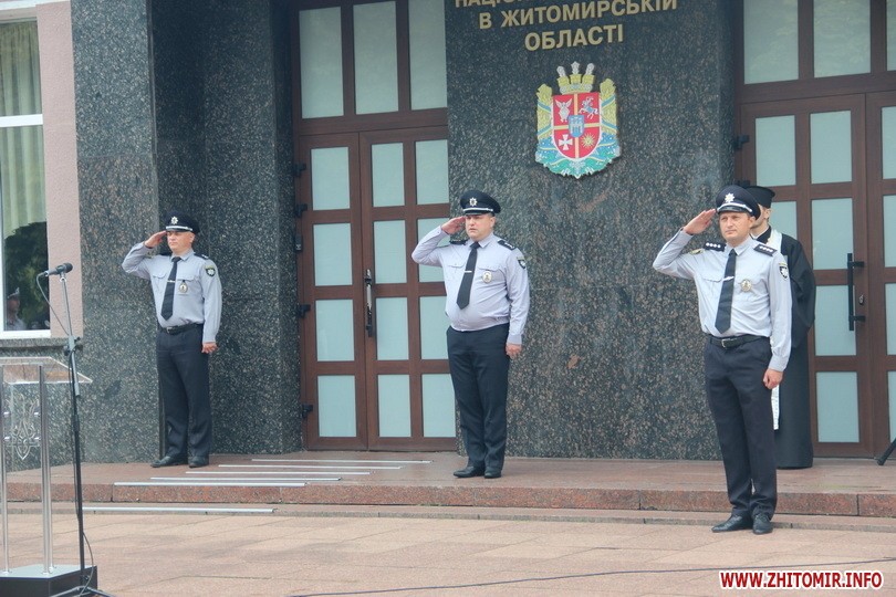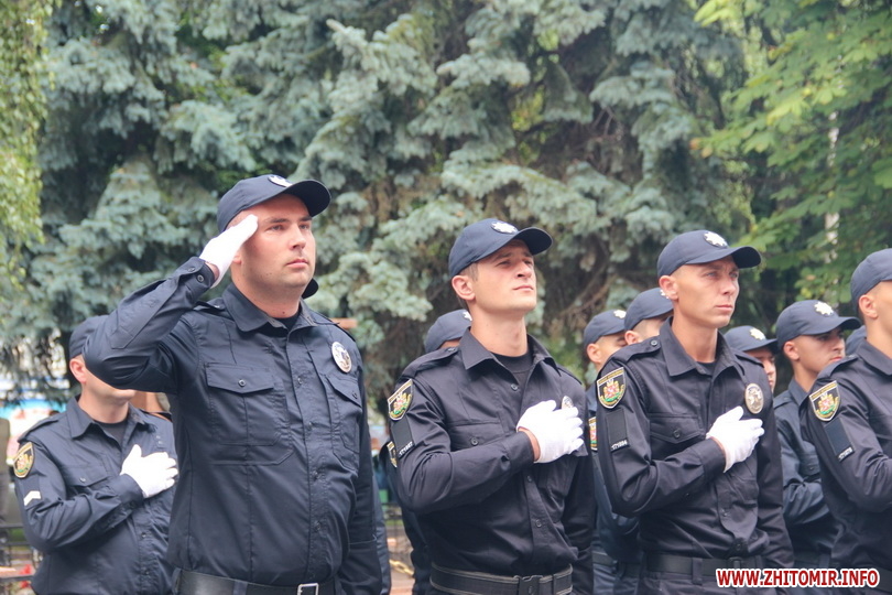 Вранці 26 липня на Старому бульварі біля будівлі ГУ Нацполіції в Житомирській області поліцейські складали присягу.