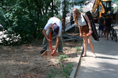У нижній альтанці вже замінили покрівлю та підлогу, розпочали реставраційні роботи в альтанці, яка розташована вище на схилах Тетерева. Будівельники почали знімати асфальтне покриття, яке замінять на тротуарну плитку. Також монтують зовнішні електромережі та продовжують укріплювати стінки біля доріжок, які знаходяться біля річки.