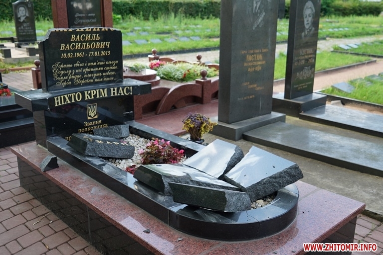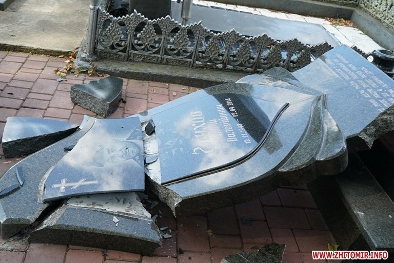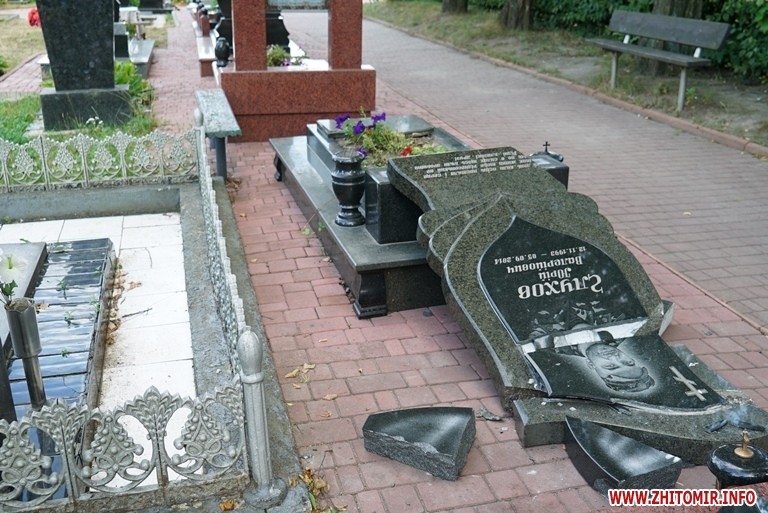 «Вандали зайшли на кладовище й почали валити надгробки, але так, щоб їх можна було відновити, а саме пам’ятники на могилах учасників АТО були розтрощені так, що відновленню не підлягають. Порахували, що на відновлення пам’ятників потрібно близько 70 тисяч гривень, близько 30 тисяч гривень планують виділять з депутатських коштів, а частину фінансування візьме на себе міська влада. Зараз родичі мають написати заяви і тоді вже буде відома точна сума», - сказала в коментарі Житомир.info начальник управління інформації облради Олександра Стежко.
