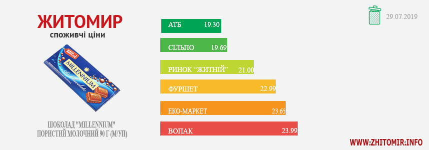МОНІТОРИНГ ЗДІЙСНЕНО МЕТОДОМ КОНТРОЛЬНОЇ ЗАКУПІВЛІ, У МІСЦЯХ ПРОДАЖУ: AТБ, пр. Миру, 15 А, Ринок "Житній", майдан Житній ринок, Сільпо, майдан Житній ринок, 1, Вопак, вул. Київська, 87, ЕКО-маркет, вул. Мала Бердичівська, 2/7, Фуршет, вул. Вітрука, 9 а