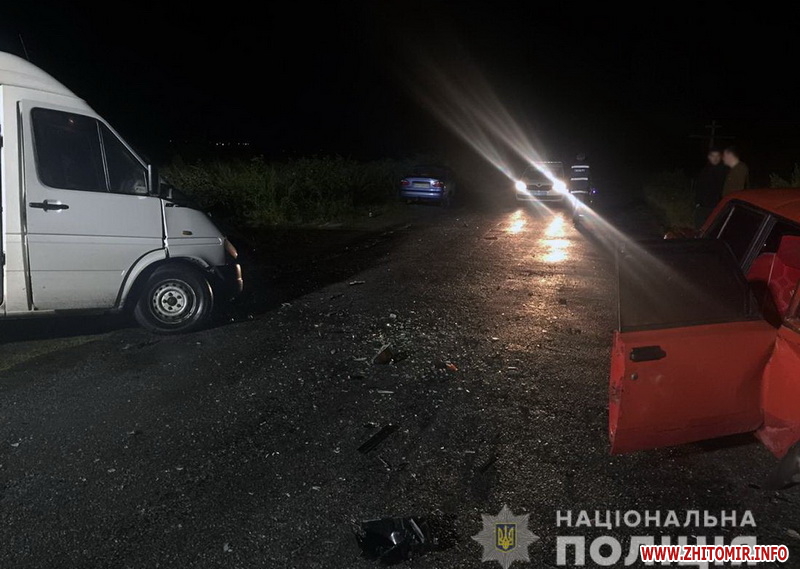 Пізно ввечері у Чуднівському районі Житомирської області зіткнулися ВАЗ і бус. Четверо осіб, в тому числі двоє дітей, отримали травми, а водій легковика загинув.