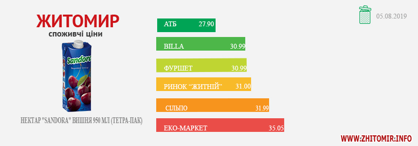 Моніторинг здійснено на основі інформації, отриманої за методом контрольної закупки 28.11.2025 р. у місцях продажу: АТБ, пр. Миру, 15а, Фора, вул. Київська, 106, Метро, вул. Ватутіна, 55в, Сільпо, вул. Житній ринок, 1