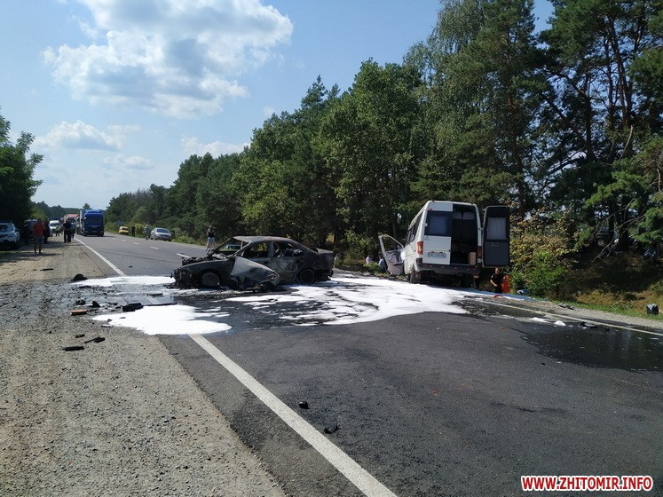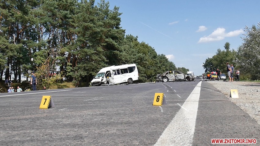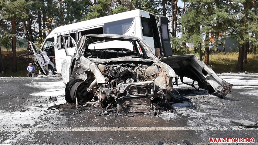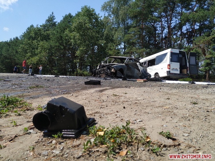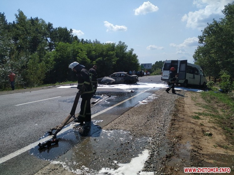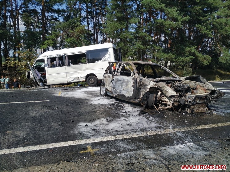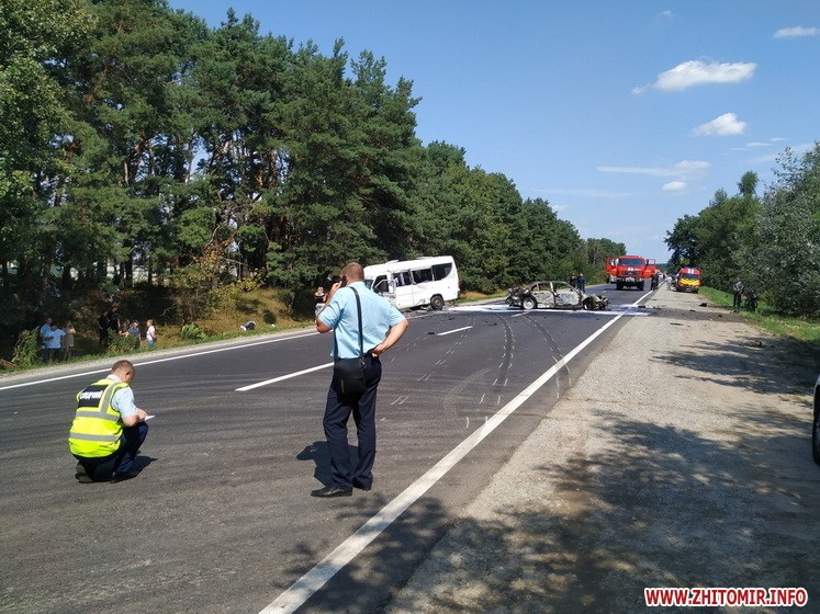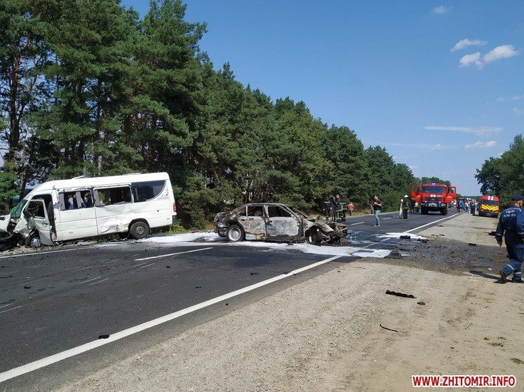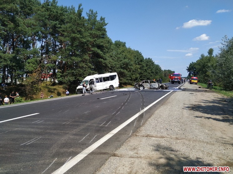 «9 серпня близько 13.10 до поліції надійшло повідомлення про ДТП поблизу с. Тетерівки Житомирського району. Попередньо, на автошляху зіштовхнулись мікроавтобус та автомобіль «БМВ», унаслідок чого травми отримали 24 людини. За наявною інформацією, унаслідок зіткнення автомобіль «БМВ» загорівся. У результаті ДТП травми різного ступеню тяжкості отримали водій та 21 пасажир мікроавтобуса, а також водій та пасажир легковика. Загиблих серед людей немає. На місці події працюють слідчо-оперативні групи ГУНП та Житомирського районного відділення поліції, екстрені служби», - інформує пресслужба поліції області.