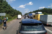 В напрямку Житомира поблизу заправки ANP утворився великий затор.