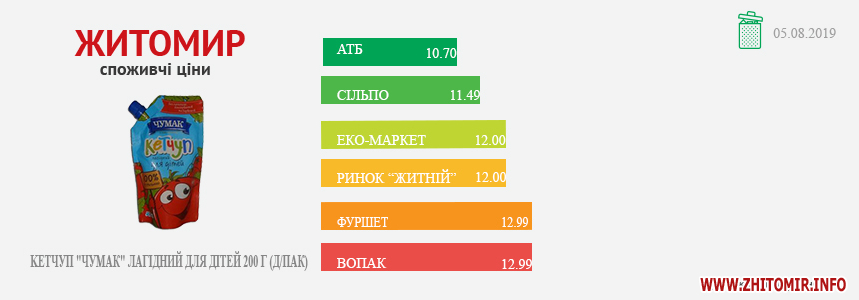 МОНІТОРИНГ ЗДІЙСНЕНО МЕТОДОМ КОНТРОЛЬНОЇ ЗАКУПІВЛІ, У МІСЦЯХ ПРОДАЖУ: AТБ, пр. Миру, 15 А, Ринок "Житній", майдан Житній ринок, ЕКО-маркет, вул. Мала Бердичівська, 2/7, Фуршет, вул. Вітрука, 9 а, Вопак, вул. Київська, 87, Сільпо, майдан Житній ринок, 1
