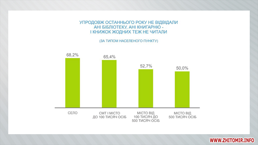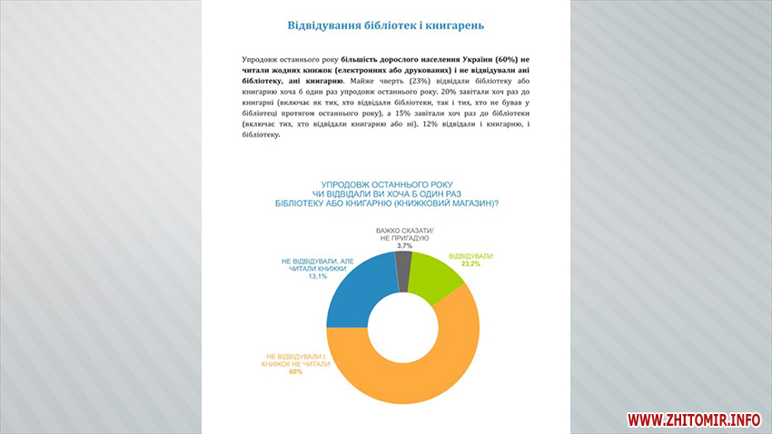 За 2018 рік 60% українців не прочитали жодної книги – такі невтішні результати опитування оприлюднили на сайті Київського міжнародного інституту соціології восени минулого року. А ось як часто беруть до рук книги житомиряни, скільки прочитали за цей рік та якій літературі надають перевагу, дізнавалися журналісти Житомир.info.