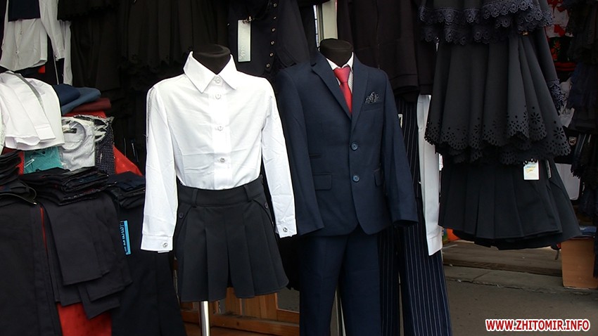«Як і минулого року, позаминулого року, шкільну форму купують постійно. Ціни на костюми у нас такі: 800 грн – трохи з синтетикою, а за 900 грн більш кращої якості», – демонструє продавчиня Ніна.