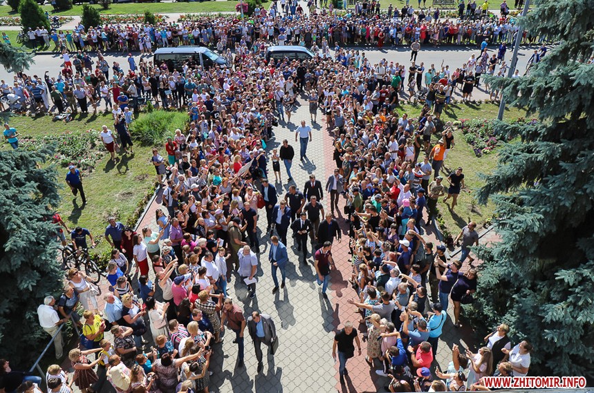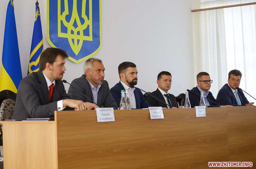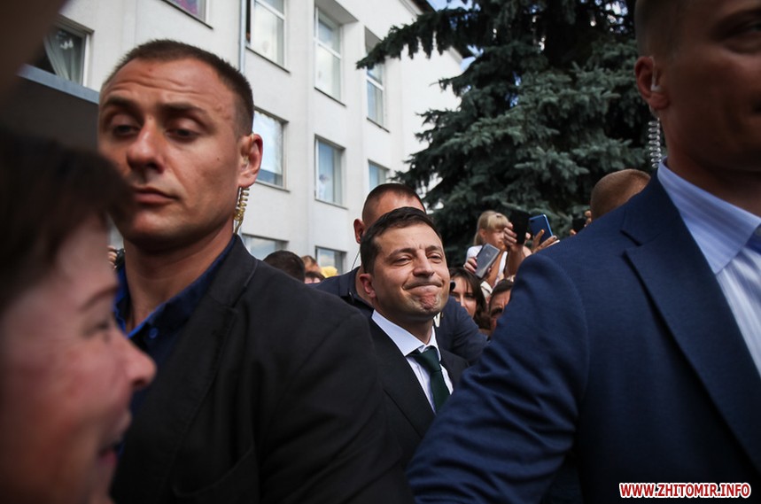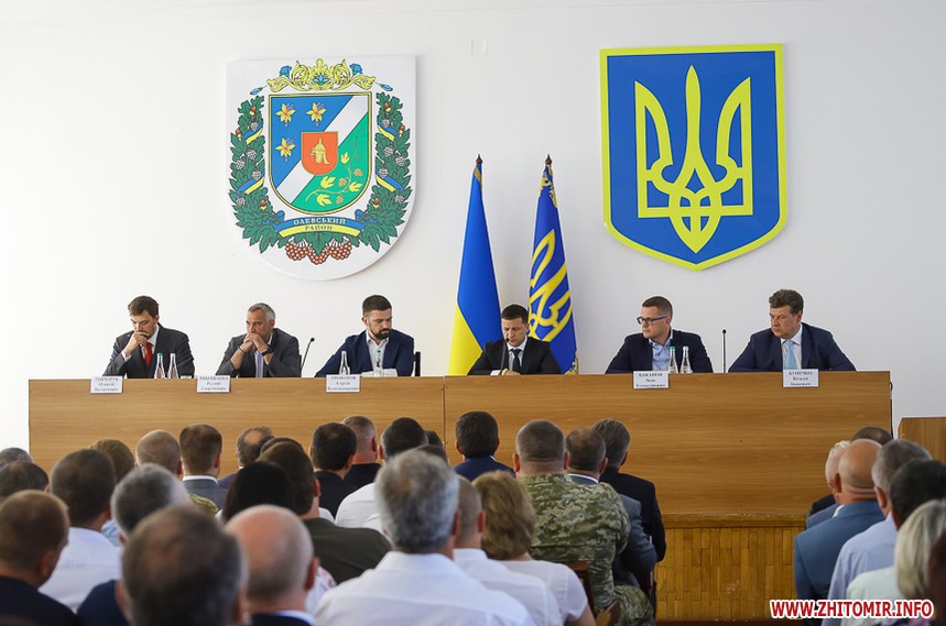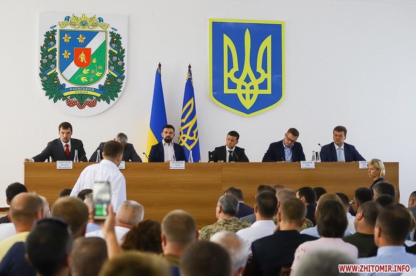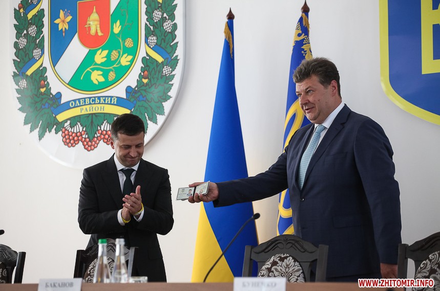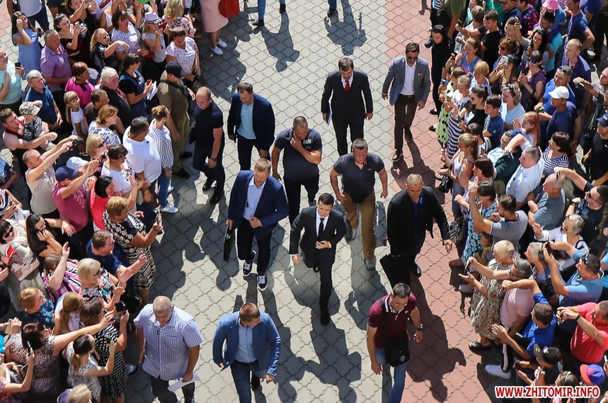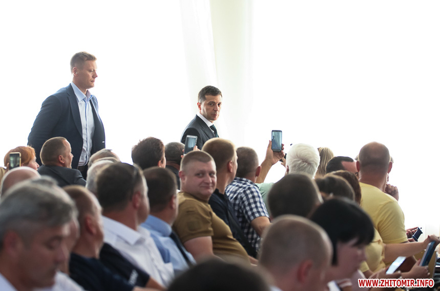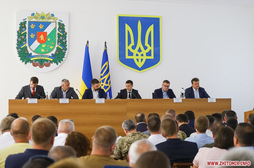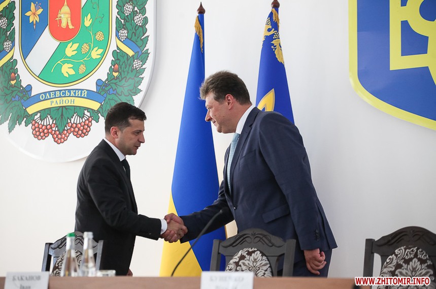 12 серпня президент України Володимир Зеленський з офіційним візитом побував у «бурштиновій столиці» Житомирської області – місті Олевськ, де представив нового голову Житомирської ОДА Віталія Бунечка. Задовго до прибуття на главу держави очікували сотні людей, дехто з них ховався від спеки під парасольками. Нарешті майже опівдні президент вийшов з кортежу та зі свитою пройшов до будівлі РДА. Люди простягали до нього руки та фотографували на телефон.