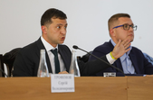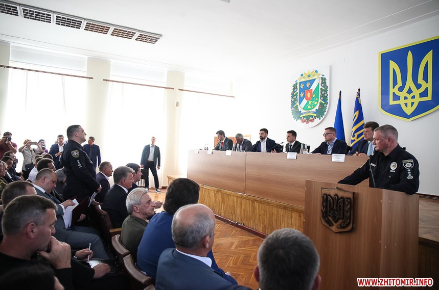 У залі засідань Зеленський провів нараду щодо незаконного видобутку бурштину, яка почалася з доповіді голови Нацполіції Сергія Князєва. Під час наради прездент доручив звільнити начальників відділів поліції Олевського та Овруцького районів, запропонував начальнику ГУНП Вячеславу Печененку написати заяву на звільнення та повідомив про зміну керівництва обласного управління СБУ.