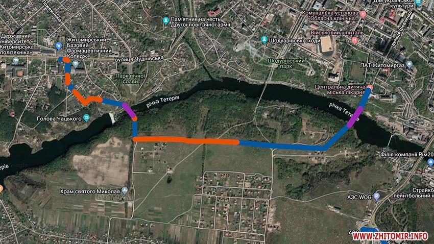 Мова йде про підготовку майданчиків для ремонту житомирського водогону методом горизонтальної санації. Для цього потрібно видалити кілька дерев на берегах річки Тетерів.