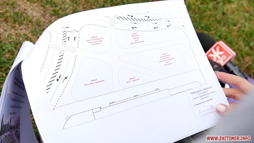 «Тут зібралися активні жителі Житомира, які побачили ідею реорганізації руху на майдані Соборному, яке відбудеться під час Європейського тижня мобільності 16-22 вересня. На обговоренні ми показали, як це може бути і як велике асфальтне кільце ми хочемо на тиждень перетворити в активне місце, де приємно буде знаходитись житомирянам. Воно буде з елементами тактичного урбанізму, відмежуванням руху автомобілі, деревами, рампами і вуличними меблями. Хочемо наповнити цей простір активностями. Місто Житомир за допомогою іноземних партнерів проводило конкурс на кращу концепцію реконструкцій центральних площ, і всі вони зійшлись на тому, що їх потрібно перетворювати на більш людиноцентричний пішохідний простір. Саме цей проєкт ми і хочемо протестувати, аби дізнатися, чи вдасться звузити майдан Соборний для автомобілістів і створити простір для людей», - розповідає директор КП «Житомиртранспорт» Іван Фурлет.