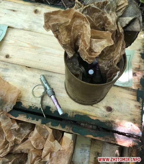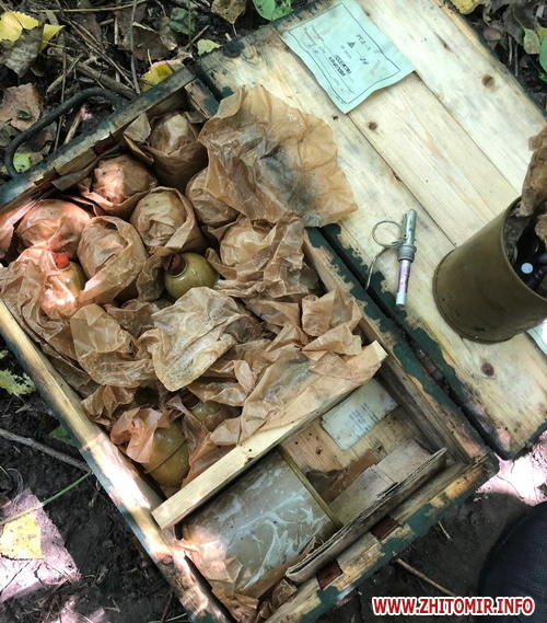 «У межах здійснення заходів із протидії незаконному обігу зброї співробітники Служби безпеки України спільно з Нацполіцією виявили на Житомирщині схованку із військовими засобами ураження. Схрон був облаштований у лісосмузі у декількох десятках метрів від паркану військової частини у Бердичеві. Зі схованки правоохоронці вилучили два прикопані ящики із двадцятьма гранатами Ф-1 та сімнадцятьма - РГД-5 із запалами до них», - інформує пресгрупа.
