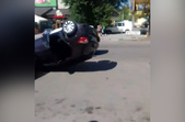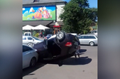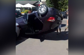 «Як це сталося, незрозуміло. Виїжджало це авто зі стоянки та трохи зачепило авто, яке їхало повз. Дуже повільно почало завалюватись. Чисто фізика, таке рідко буває. Всі живі-здорові», – зазначив чоловік.