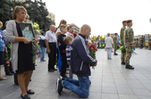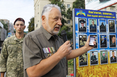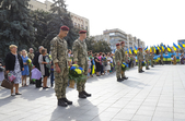 Перед тим на майданчику біля кінотеатру «Жовтень» відкрилася виставка «Події неоголошеної війни», де презентували фотоматеріали, а також речові докази, привезені з території бойових дій.