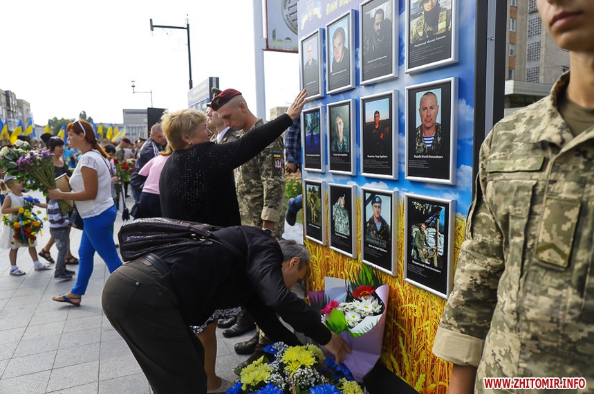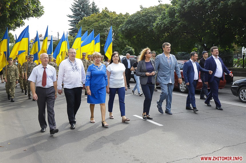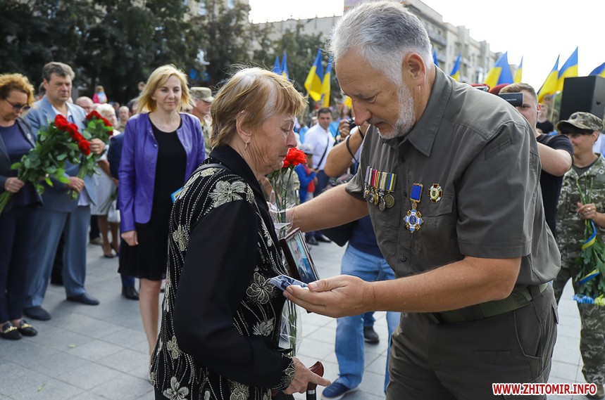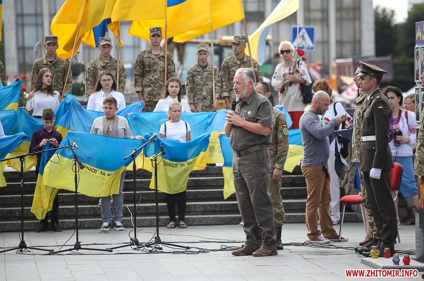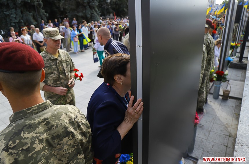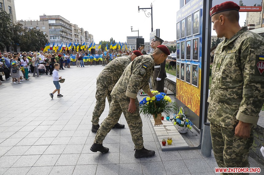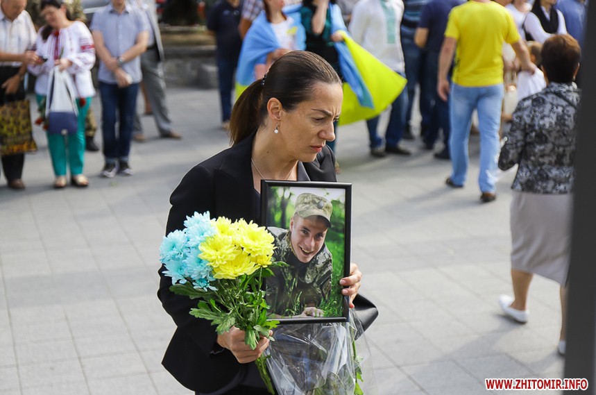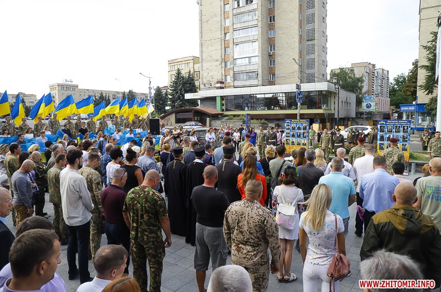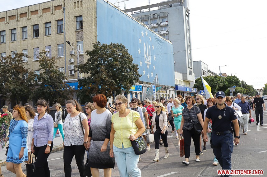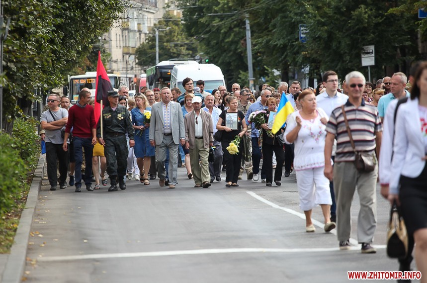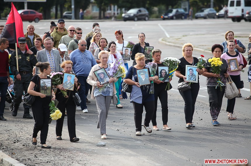 У п’ятницю, 23 серпня, після урочистого підняття національного стягу на майдані Корольова житомиряни «ходою пам’яті» вирушили до Соборного майдану, аби вшанувати молодих воїнів, які загинули за суверенітет та незалежність України.