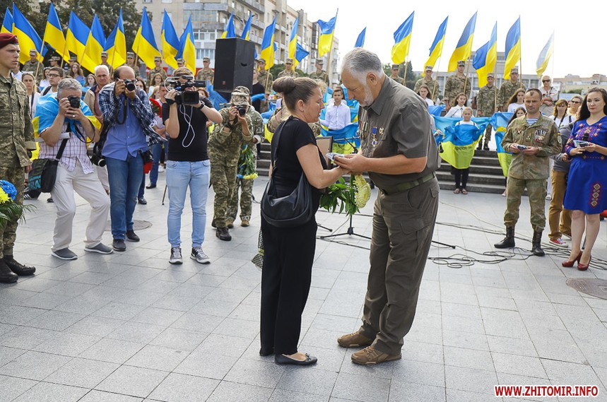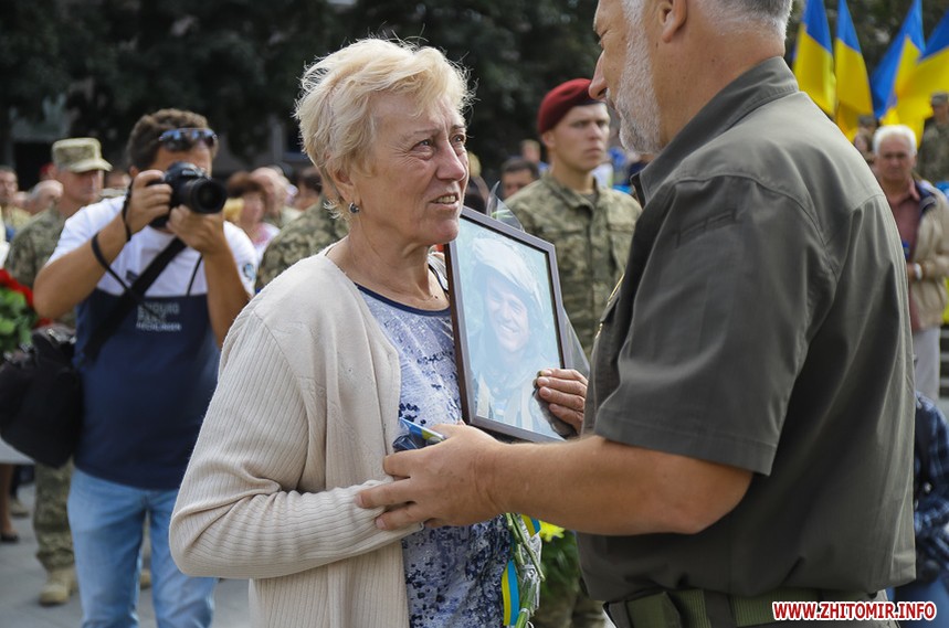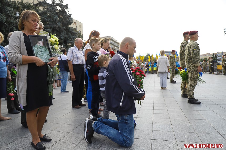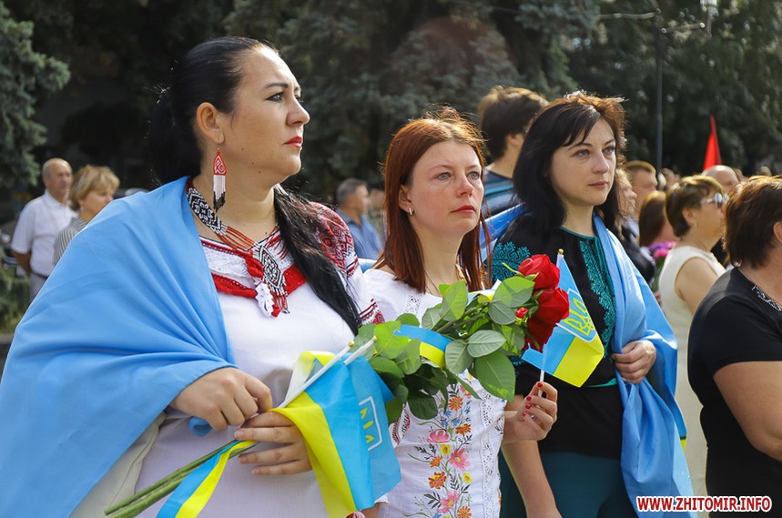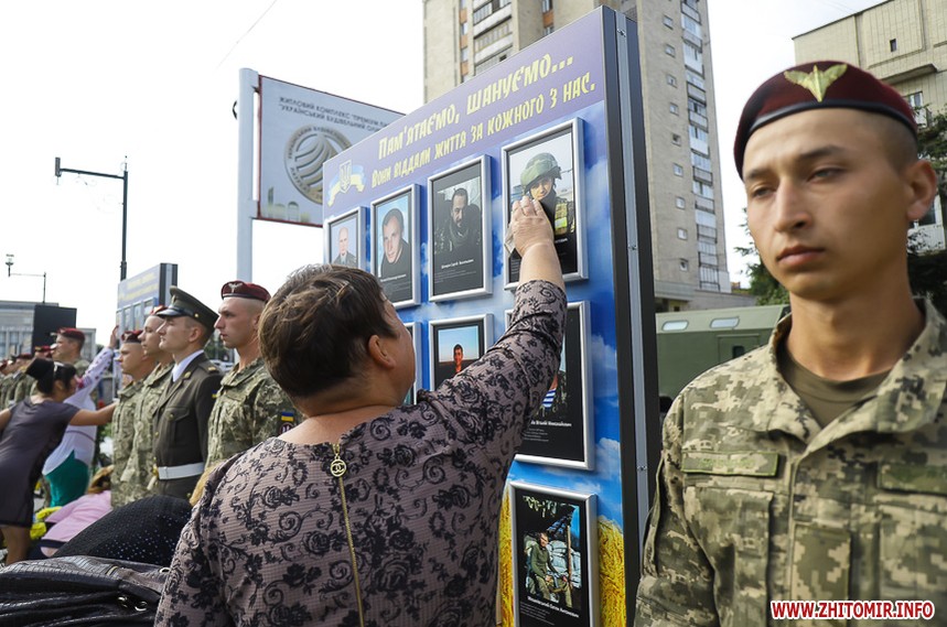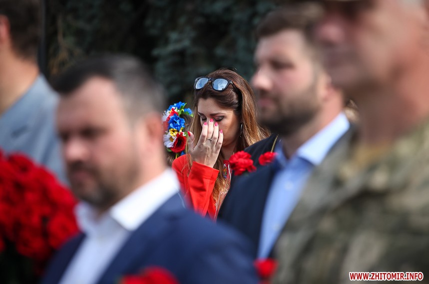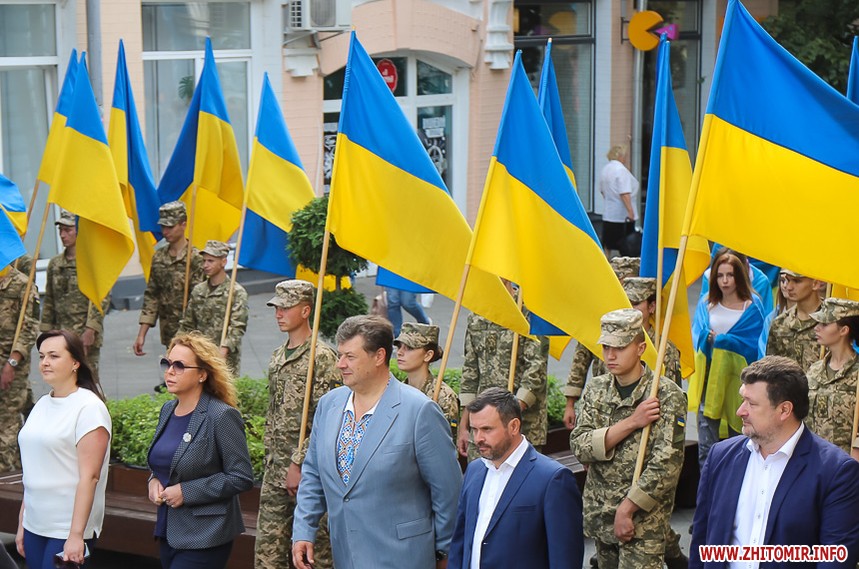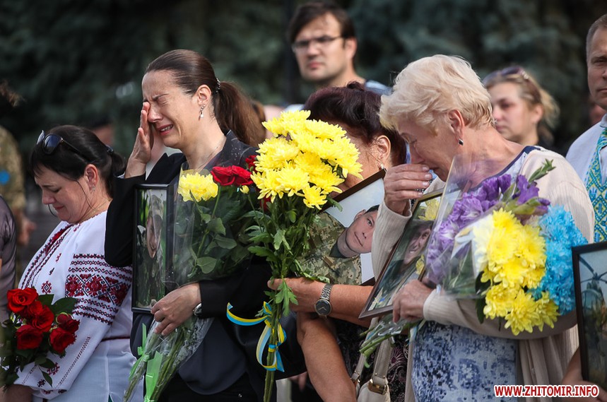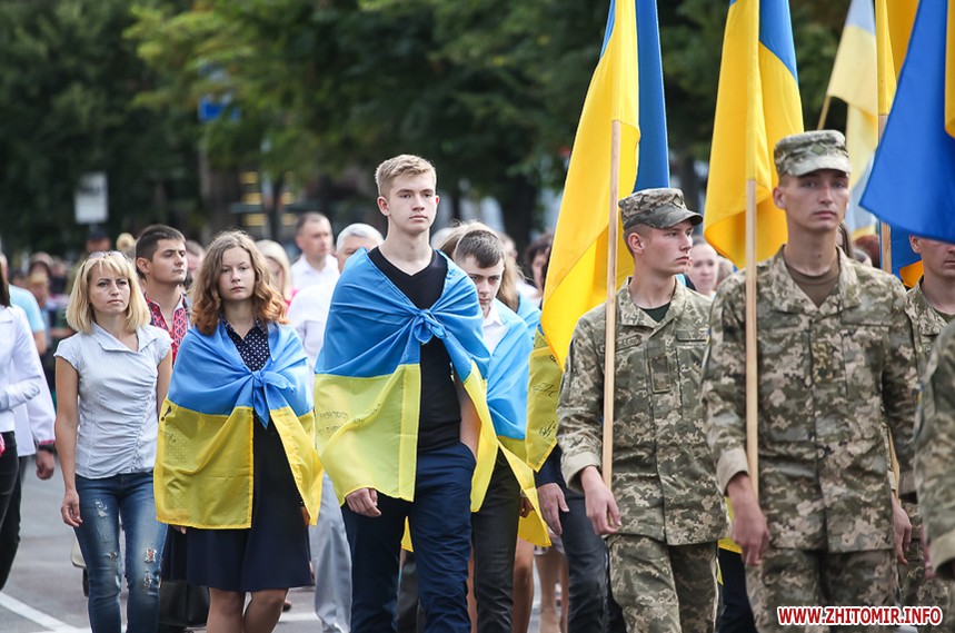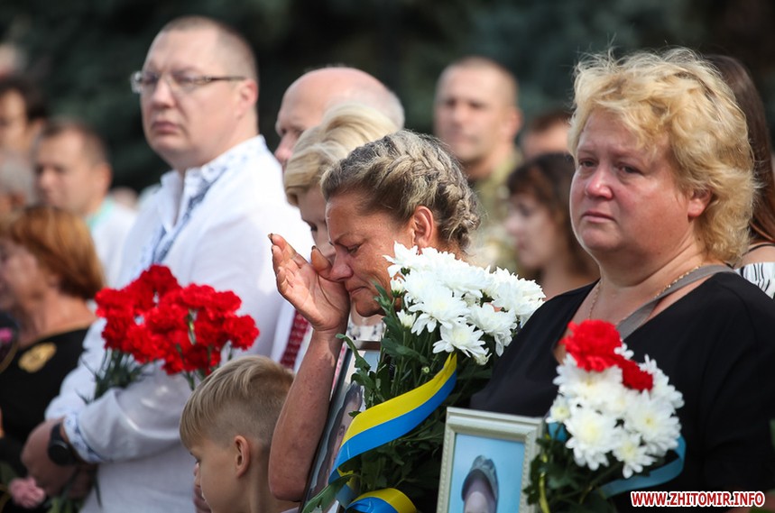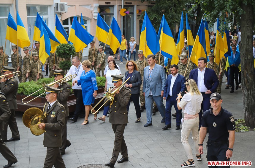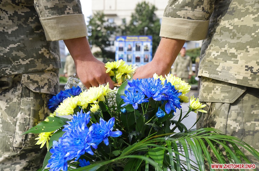 У п’ятницю, 23 серпня, після урочистого підняття національного стягу на майдані Корольова житомиряни «ходою пам’яті» вирушили до Соборного майдану, аби вшанувати молодих воїнів, які загинули за суверенітет та незалежність України.