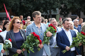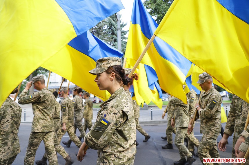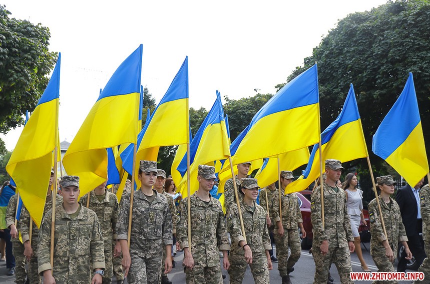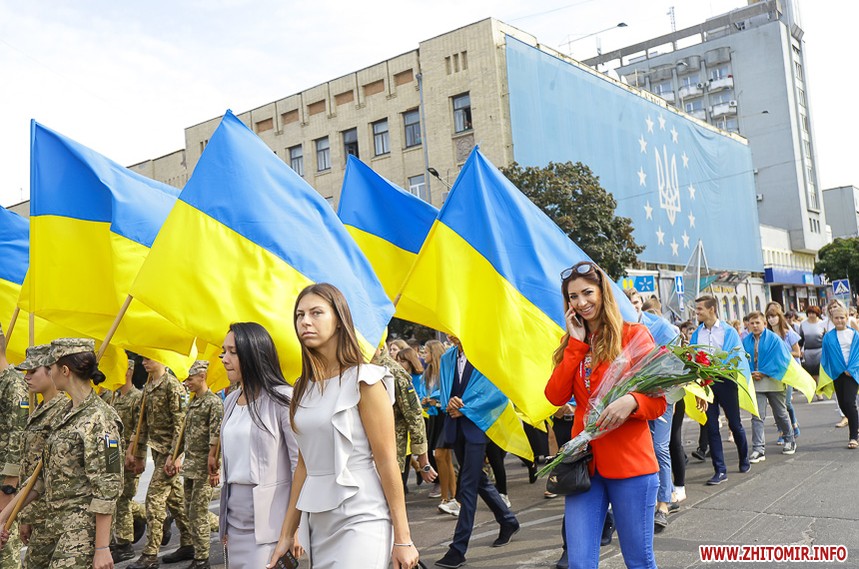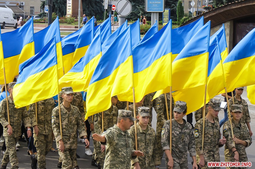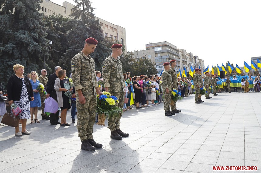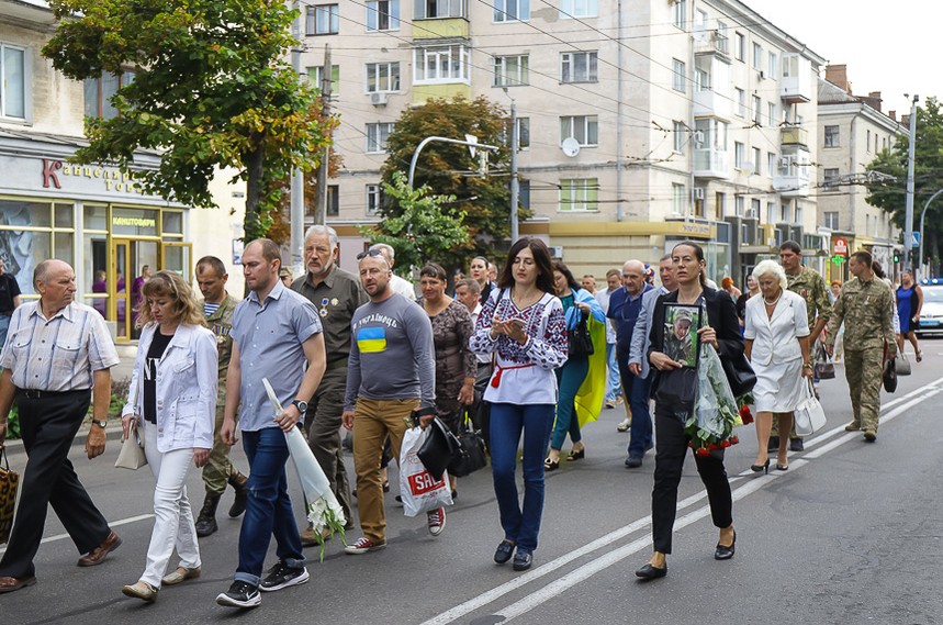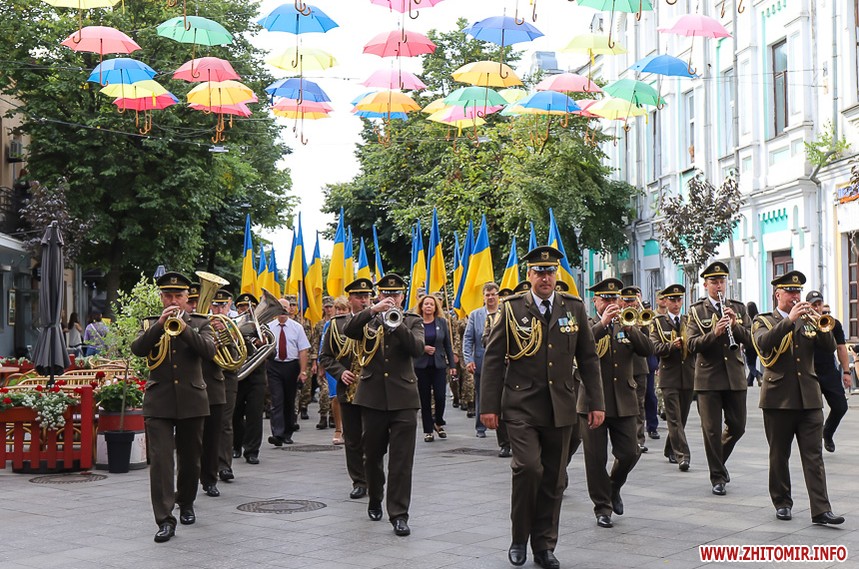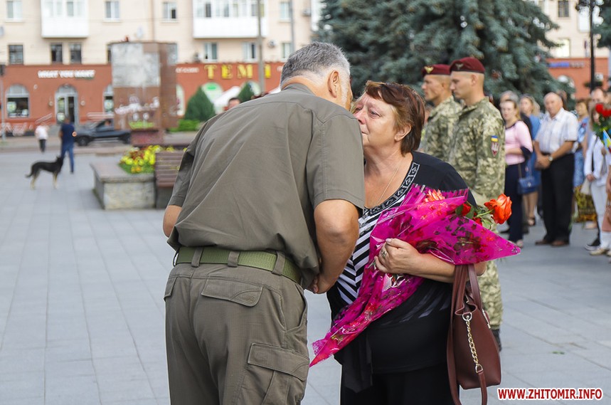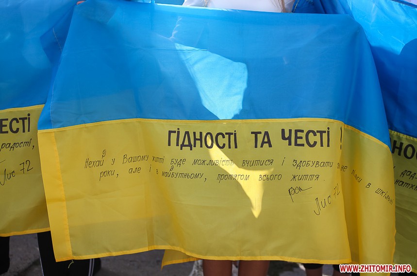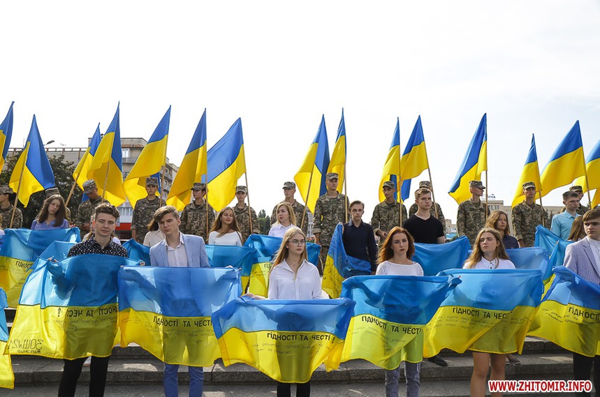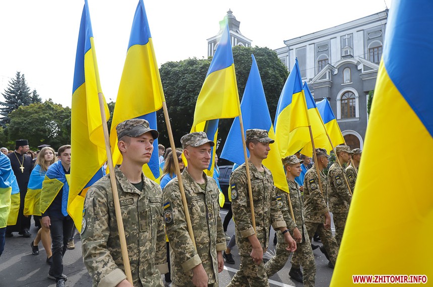 У п’ятницю, 23 серпня, після урочистого підняття національного стягу на майдані Корольова житомиряни «ходою пам’яті» вирушили до Соборного майдану, аби вшанувати молодих воїнів, які загинули за суверенітет та незалежність України.