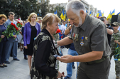 Урочисту ходу очолили матері та дружини загиблих військових зі світлинами в руках. Біля меморіальних стендів на майдані Соборному ексгубернатор Житомирської ОДА та Донецької військово-цивільної адміністрації Павло Жебрівський як президент спілки «Бойове братерство України» вручив рідним загиблих пам’ятні кулони «Батьківське серце».