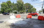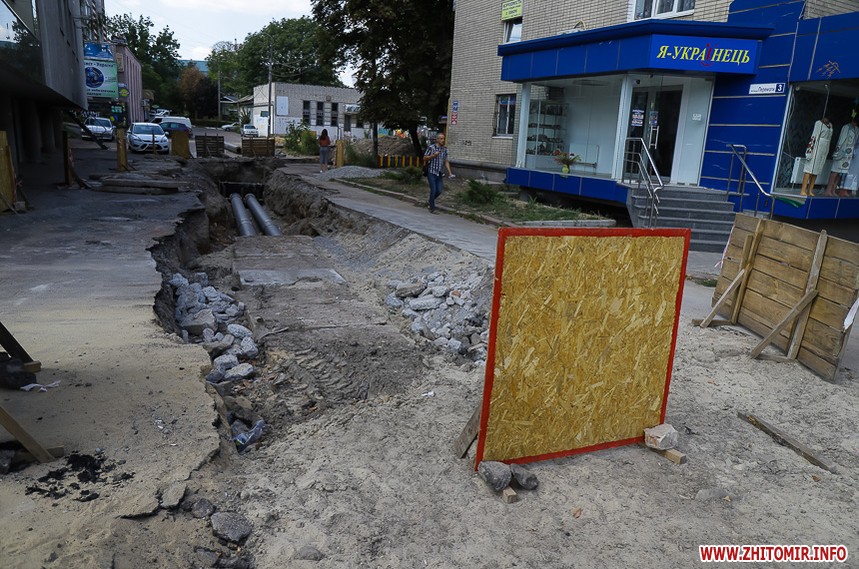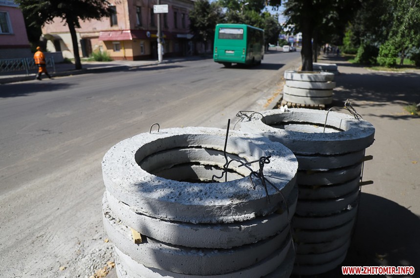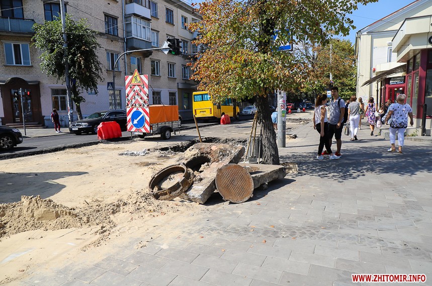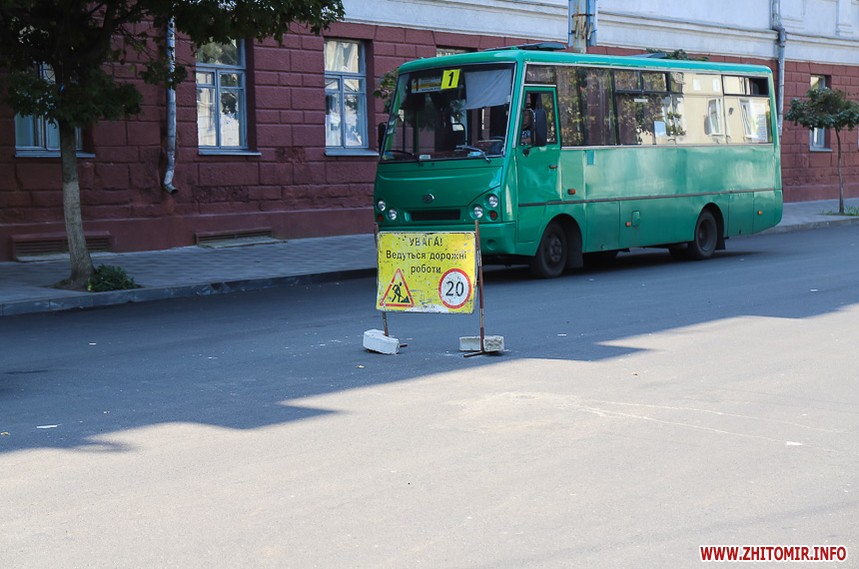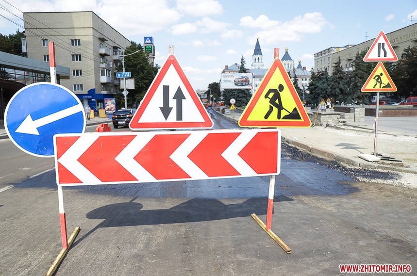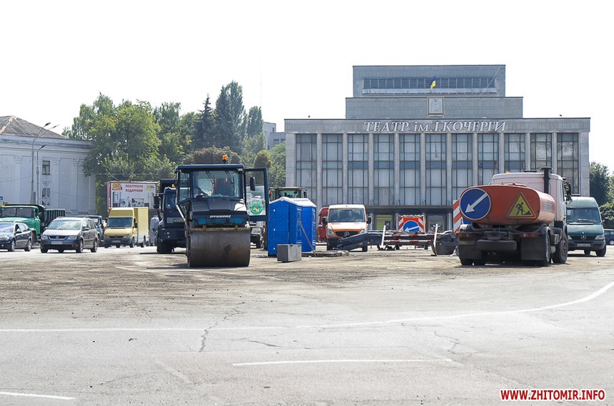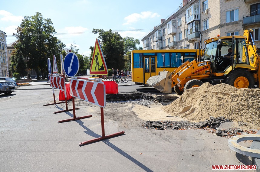 На вулиці Великій Бердичівській, де зрізати старий асфальт розпочали 12 липня, ремонтні роботи вже перебувають на завершальній стадії. Ділянка від майдану Соборного до будівлі міської ради може похизуватися гладенькою поверхнею. Тут ще подекуди стоять знаки, які попереджають про ремонтні роботи, проте рух уже відкритий по усіх смугах. Ближче до Старого бульвару на днях проводили заміну комунікацій, тож роботи по вкладанню асфальту тут ще попереду. Рух на даній ділянці обмежений, а для пасажирів громадського транспорту на зупинці розмістили оголошення про зміну руху маршрутів тролейбусів. Також лишається закритим проїзд у двір міської ради, де замінювали тепломережу.