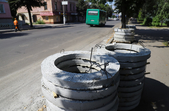 Фоторепортаж про те, як у дощовий день ремонтують центральні житомирські дороги, дивіться тут.