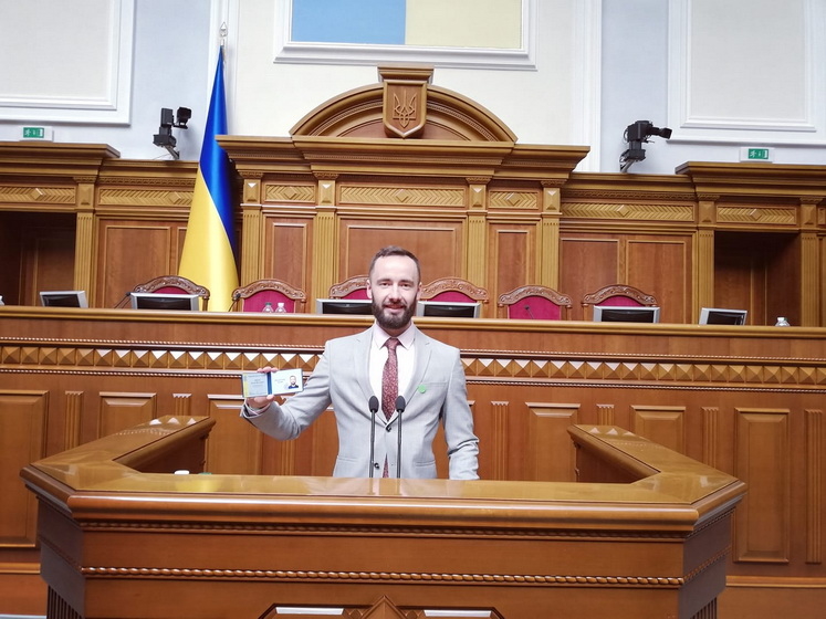 Богдан Кицак від партії «Слуга народу», який представляє Бердичівський округ №63, виклав фото з депутатським посвідченням за парламентською трибуною.