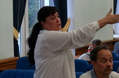 Спочатку начальник управління транспорту Костянтин Підпокровний роз`яснив людям, які обов'язки будуть у перевізників за умовами конкурсу. Після чого люди висловили думку, що перевізники не будуть виконувати їх та почали пропонувати додати кілька пунктів в умови конкурсу.