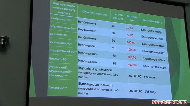 Як повідомляв Житомир.info, відповідно до проєкту рішення виконкому міської ради від 14 червня 2019 року, вартість проїзду в громадському транспорті Житомира планують підвищити: у трамваях і тролейбусах проїзд коштуватиме 5 грн, у маршрутках – 7 грн, але при безготівковому розрахунку діятимуть знижки.