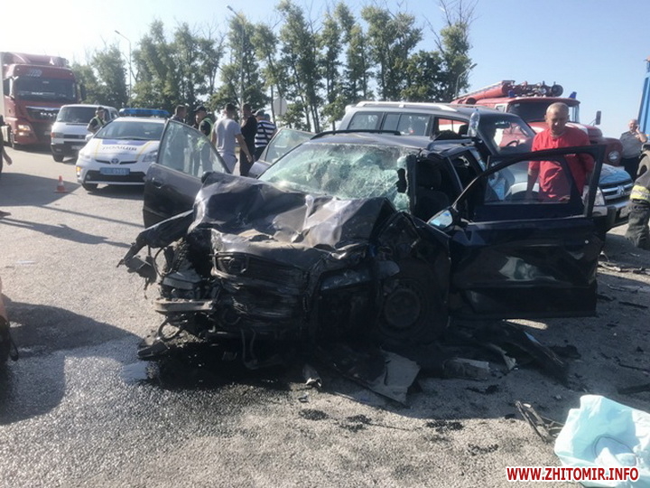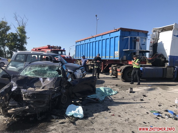За повідомленням пресслужби ГУНП в Житомирській області, ДТП трапилось під час розвороту вантажівки, яка при цьому не надала переваги в русі двом легковикам.