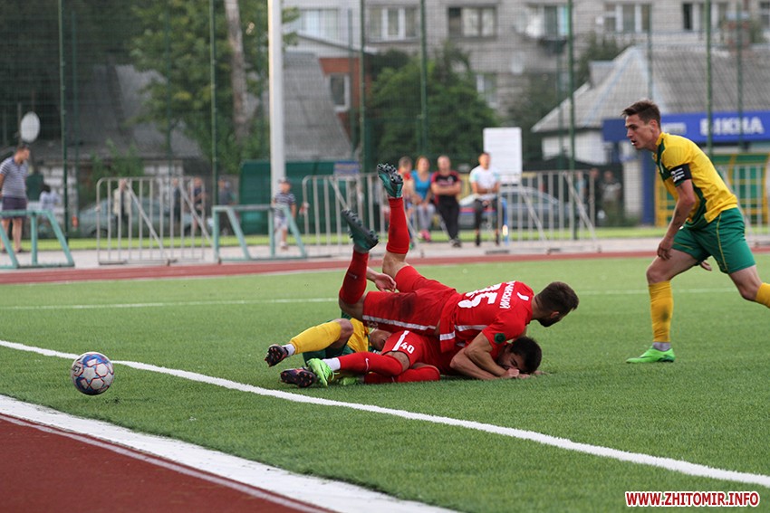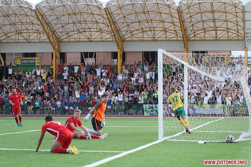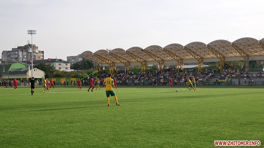В матчі 8 туру ІІ ліги ПФЛ «жовто-зелені» приймали ФК «Калуш». Нагадаємо, до цього домашні матчі житомирські футболісти грали у Коростені чи Новограді-Волинському.