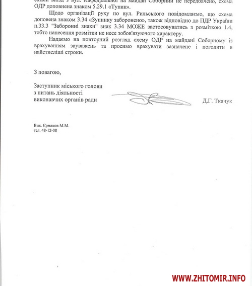 У поліції причини непогодження тимчасової зміни схеми руху на майдані Соборному не коментують. Свої аргументи вони наводять у листі до міської ради, який у муніципалітеті отримали ввечері в п’ятницю, 6 вересня. Зокрема, у ньому йдеться про те, що зміна схеми руху ускладнить виїзд з вулиці Київської й призведе до аварійно-небезпечних ситуацій на перехресті. Також патрульні висловлюють зауваження щодо неправильного, на їх думку, розташування дорожніх знаків.