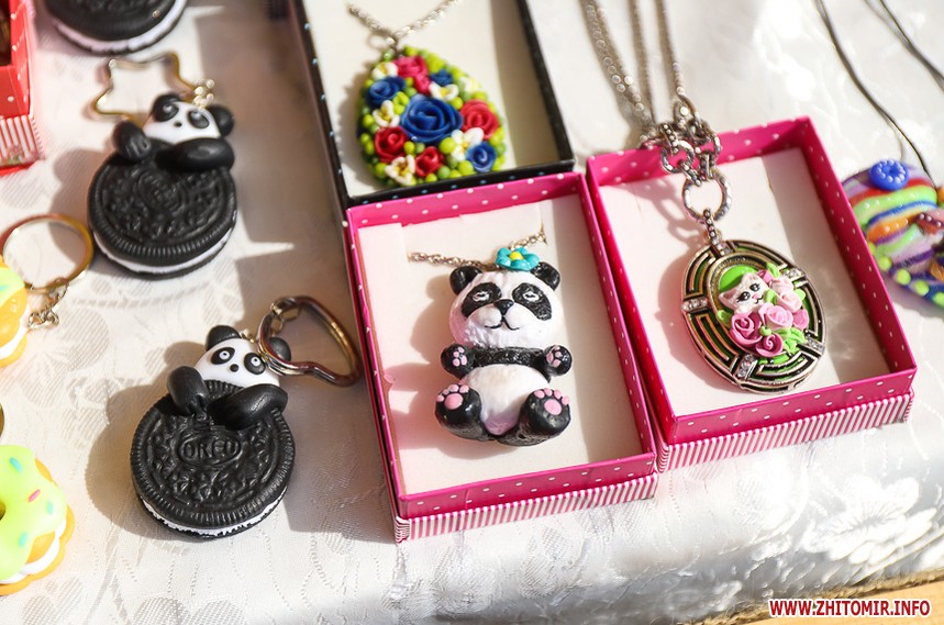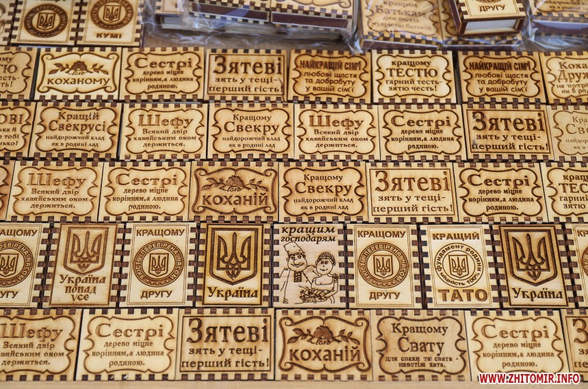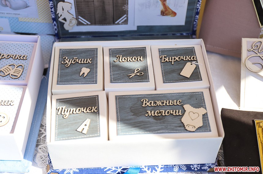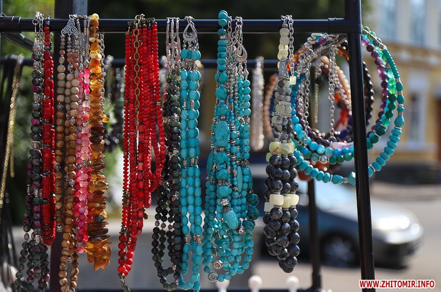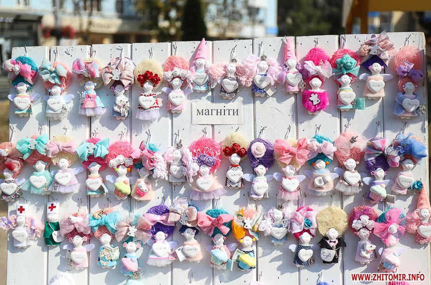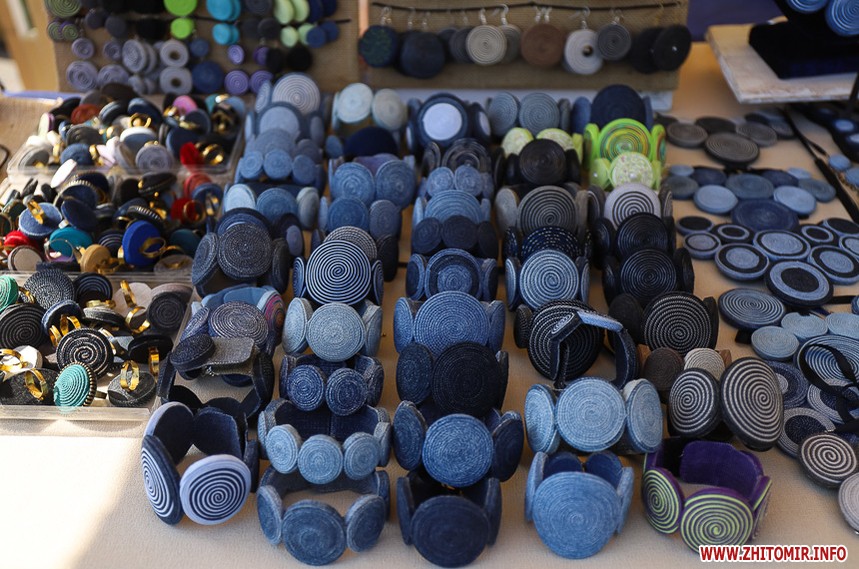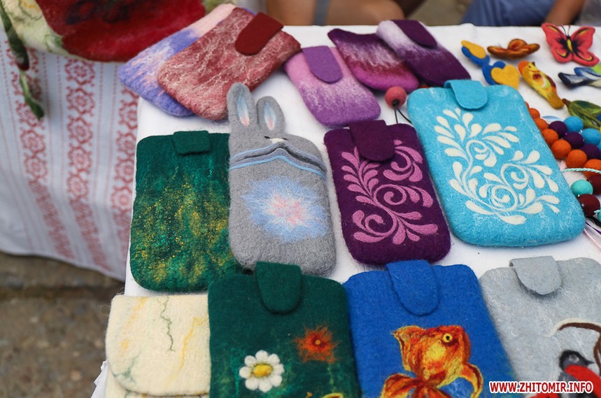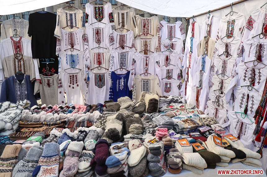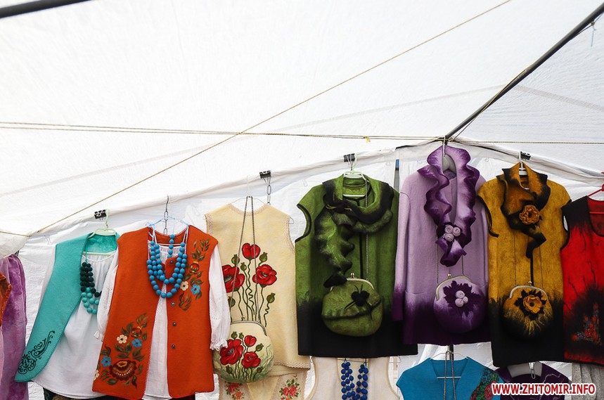 Майстри й майстрині пропонують житомирянам та гостям міста оригінальні вироби з фетру, пальта й на півпальта по 1000 гривень, вишиванки по 500, а також магніти з дерева, свистульки, намиста, обереги, ляльки, свічки, листівки та парфуми. Ярмарок працюватиме в усі святкові дні до 22 години.