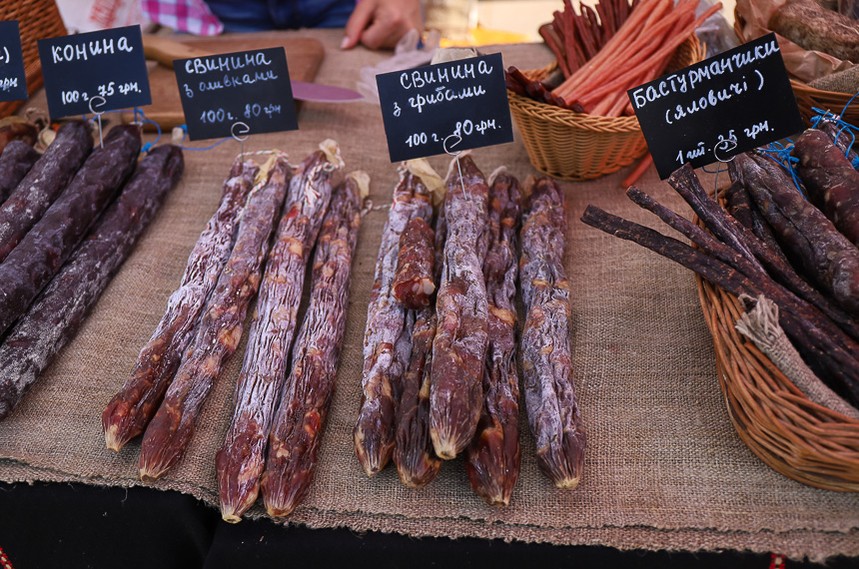 Тут продають сири, в’ялене м'ясо та ковбаси, мед, желейки та східні солодощі. А ще — алкогольний напій «Закарпатська віагра», а також вина з ожини, медовуху, столові вина на розлив.